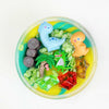 Þessi krukka er fullkomin lítil gjöf. Hún inniheldur litla risaeðluvini og hluti til að búa til þinn eigin risaeðlugarð.